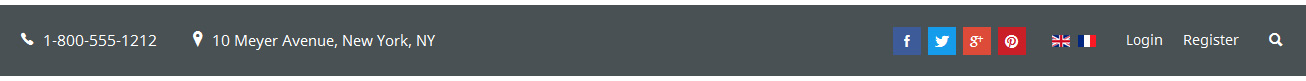 This bar consist of custom_1, custom_2, language, and search positions. It also contains the login and register links, which are explained here.